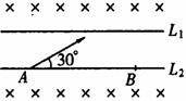 12、如图所示,河水的流速为4m/s,一条船要从河的南岸A点沿与河岸成30°角的直线航行到北岸下游某处,则船的开行速度(相对于水的速度)最小为