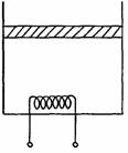 (3)、(8分)如图所示,一圆柱形绝热气缸竖直放置,通过绝热活塞封闭着一定质量的理想气体。活塞的质量为m,横截面积为S,与容器底部相距h。现通过电热丝缓慢加热气体,当气体吸收热量Q时,活塞上升上h,此时气体的温为T1。已知大气压强为p0,重力加速度为g,不计活塞与气缸的摩擦,求: