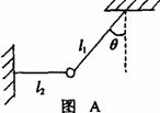 (6分)如图所示,图A为一个质量为m的物体系于长度分别为l1、l2的两根细线上,l1的一端悬挂在天花板上,与竖直方向夹角为θ,l2水平拉直,物体处于平衡状态。图B中将长为l1的弹簧(其它同图A)现将l2线剪断,则剪断瞬时物体的加速度分别为aA=