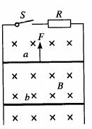 ,它们与导轨相连,并可沿导轨无摩擦滑动。闭合开关S,先固定b,用一恒力F向上拉,稳定后a以