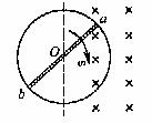16.如图所示,导线圆环总电阻为2R,半径为d,垂直磁场固定于磁感应强度为B的匀强磁场中,此磁场的左边界正好与圆环直径重合,电阻为R的直金属棒ab以恒定的角速度ω绕过环心O的轴匀速转动。a、b端正好与圆环保持良好接触,到图示位置时,求: