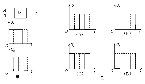 如图甲所示为某一门电路符号及输入端A、B的电势随时间变化关系的图象,则图乙中不能正确反映该门电路输出端电势随时间变化关系的图象是( )