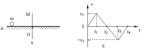 质量为m的小球放在光滑水平面上,在竖直线MN的左方受到水平恒力F1作用(m可视为质点),在MN的右方除受F1外还受到与F1在同一条直线上的水平恒力F2作用,现设小球由A点静止开始运动如图a所示,小球运动的v-t图象如图b所示:由图可知下列说法错误的是 ( )