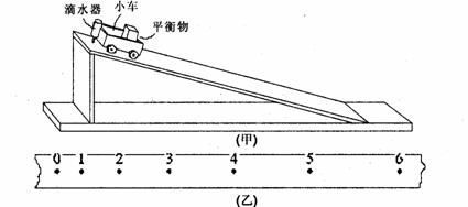 (2)张丹同学用如图(甲)所示的滴水法测量一小车在斜面上运动时的加速度.实验过程上如下:在斜面上铺上白纸,用图钉钉住.把滴水计时器固定在小车的末端,在小车上固定一平衡物.调节滴水计时器的滴水速度,使其每0.2s滴一滴(以滴水计时器内盛满水为准).在斜面顶端放置一浅盘,把小车放在斜面顶端,把调好的滴水计时器盛满水,使水滴能滴人浅盘内.随即在撤去浅盘的同时放开小车,于是水滴在白纸上留下标志小车运动规律的点迹.小车到达斜面底端时立即将小车移开.图(乙)为实验得到的一条纸带,用刻度尺量出相邻点之间的距离是