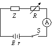 (3)把元件Z接入如图所示的电路中,当电阻R的阻值为R1=2Ω时,电流表的读数为1.25A;当电阻R的阻值为R2=3.6Ω时,电流表的读数为0.80A .结合上表数据,求出电池的电动势为 ▲ V,内阻为 ▲ Ω.(不计电流表的内阻,结果保留两位有效数字)