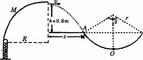 (2)从M上端飞出到A点的过程中,小钢珠运动的水平距离s,