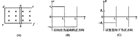 15.(16分)如图(A)所示,固定于水平桌面上的金属架cdef,处在一竖直向下的匀强磁场中,磁感应强度的大小为B0,金属棒ab搁在框架上,可无摩擦地滑动,此时adeb构成一个边长为l的正方形,金属棒的电阻为r,其余部分的电阻不计。从t=0的时刻起,磁场开始均匀增加,磁感应强度变化率的大小为k(k=