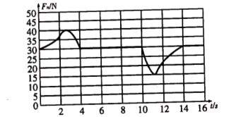 12.(6分)在电梯中,把一重物置于台秤上,台秤与压力传感器相连,电梯由静止开始竖直上升过程中,传感器所受的压力与时间的关系(FN-t)图象如图所示,g取10m/s2由图象可知