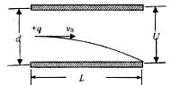 20.如图所示,带正电的粒子以一定的初速度v0沿两板的中线进入水平放置的平行金属内,恰好沿下板边缘飞出,已知板长为L,板间距离为d,板间电压为U,带电粒子的电荷量为q,粒子通过平行金属板的时间为t(不计粒子的重力),则