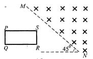 21.如图所示,PQRS为一矩形导线框,边PS水平放置,且PS=2PQ。它以恒定的水平速度向右进入以MN为边界足够大的匀强磁场中,磁场方向垂直线框平面,MN直线与水平方向成45°角,从S点刚进磁场开始计时,设电流逆时针方向为正,则线框中的感应电流随时间变化关系图象正确的是