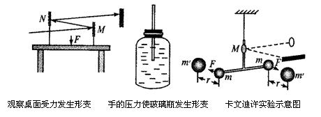 3.(东城区)如下图是力学中的三个实验装置,这三个实验共同的物理思想方法是 ( )