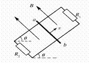8.如图所示,平行金属导轨与水平面成θ角,导轨与两相同的固定电阻R1和R2相连,匀强磁场垂直穿过导轨平面。有一导体棒ab,质量为m,导体棒的电阻R =2R1