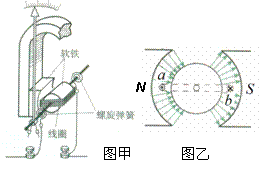 D.当线圈转到如图乙所示的位置,安培力的作用使线圈沿顺时针方向转动