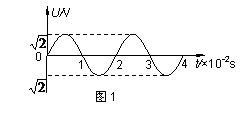 如图1所示为理想变压器原线圈所接正弦交变电压的波形。原、副线圈匝数比n1∶n2=10:1,串联在原线圈电路中电流表的示数为1A,则