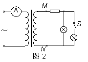 如图2所示,理想变压器的副线圈上通过输电线接有两个相同的灯泡L1和L2;输电线的等效电阻为R,开始时,开关S断开。当S接通时,以下说法正确的是( )