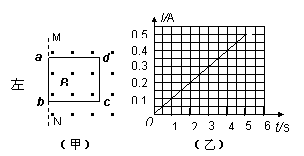 2.(石景山区)如图(甲)所示,边长为L=2.5m、质量m=0.50kg的正方形绝缘金属线框,平放在光滑的水平桌面上,磁感应强度B=0.80T的匀强磁场方向竖直向上,金属线框的一边ab与磁场的边界MN重合.在力F作用下金属线框由静止开始向左运动,在5.0s内从磁场中拉出.测得金属线框中的电流随时间变化的图象如图(乙)所示.已知金属线框的总电阻为R=4.0Ω.