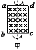 一矩形线圈在匀强磁场中绕垂直于磁感线的轴匀速转动,t=0时线圈平面垂直于磁感线,cd边垂直纸面向里运动,如图甲所示。规定a