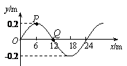 7.一列沿x轴传播的简谐横波,t = 0时刻的波形如图所示,此时质元P恰在波峰,质元Q恰在平衡位置且向上振动。再过0.2s, 质元Q第一次到达波峰,则