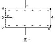 6.图5为示波管中偏转电极的示意图,相距为d长度为l的平行板A、B加上电压后,可在A、B之间的空间中(设为真空)产生电场(设为匀强电场)。在AB左端距A、B等距离处的O点,有一电荷量为+q、质量为m的粒子以初速v0沿水平方向(与A、B板平行)射入(如图)。不计重力,要使此粒子能从C处射出,则A、B间的电压应为( )A.