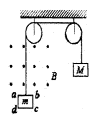 的匀强磁场区,如图,线框abcd在砝码M的牵引下做加速运动,当线框上边ab进入磁场后立即做匀速运动。接着线框全部进入磁场后又做加速运动(g=10m/s2)。问: