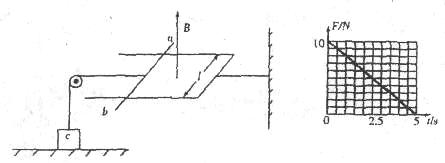 垂直于框架的两臂,与框架构成边长L=1.Om的正方形,整个回路的电阻R=2Ω。质量m=1kg的物体