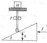 斜面体上,并将斜面体放在光滑的水平面上,斜面体质量为m=50kg。现沿水平方向对斜面体施以推力F,小轮摩擦和支杆质量均不计,