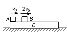 (16分)一块足够长的木板C质量2m,放在光滑的水平面上,如图所示。在木板上自左向右放有A、B两个完全相同的物块,两物块质量均为m,与木板间的动摩擦因数均为μ。开始时木板静止不动,A、B两物块的初速度分别为v0、2v0,方向如图所示。试求:⑴木板能获的最大速度。⑵A物块在整个运动过程中最小速度。⑶全过程AC间的摩擦生热跟BC间的摩擦生热之比是多少?