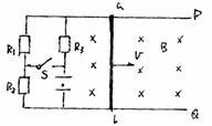 14. 如图所示,光滑的平行导轨P、Q相距l=1m,处在同一水平面中,导轨的左端接有如图所示的电路,其中水平放置的电容器两极板相距d=10mm,定值电阻R1=R3=8Ω,R2=2Ω,导轨的电阻不计,磁感强度B=0.4T的匀强磁场竖直向下穿过导轨面,当金属棒ab沿导轨向右匀速运动(开关S断开)时,电容器两极之间质量m=1×10-14kg,带电量q=-1×10-15C的微粒恰好静止不动;当S闭合时,微粒的加速度a=7m/s2向下做匀加速运动,取g=10m/s2, 求: