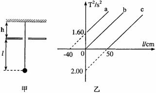 20.将一单摆装置竖直悬挂于某一悬点,其中悬线的上部分在带孔的薄挡板上面(单摆的下部分露于板外),如图(甲)所示,将悬线拉离平衡位置一个小角度后由静止释放,设单摆振动过程中悬线不会碰到挡板,如果本实验的长度测量工具只能测量出挡板到摆球球心之距l,并通过改变l而测出对应的摆动周期T,再以T2为纵轴、l为横轴做出函数关系图象,就可以通过此图象得出悬点到挡板的高度h和当地的重力加速度。