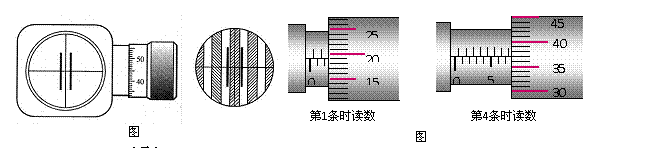 5、用双缝干涉测光的波长。实验装置如图(甲)所示,已知单缝与双缝间的距离L1=100mm,双缝与屏的距离L2=700mm,双缝间距d=0.25mm。用测量头来测量亮纹中心的距离。测量头由分划板、目镜、手轮等构成,转动手轮,使分划板左右移动,让分划板的中心刻线对准亮纹的中心(如图(乙)所示),记下此时手轮上的读数,转动测量头,使分划板中心刻线对准另一条亮纹的中心,记下此时手轮上的读数。