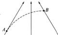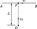 ★★★★30.如图所示,有一只狐狸以不变的速度v1沿着直线AB逃跑,一猎犬以不变的速率v2追击,其运动方向始终对准狐狸,某时刻狐狸在F处,猎犬在D处,FD⊥AB,且FD=L,试求猎犬此时的加速度大小.[6]