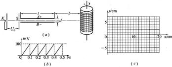 (2)为使粒子始终保持在半径为R的圆轨道上运动,磁场必须周期性递增.求粒子绕行第n圈时的磁感应强度Bn.(3)求粒子绕行n圈所需的总时间tn(粒子通过A、B板之间的时间忽略).(4)定性画出A板电势U随时间t变化的关系图(从t=0起画到粒子第四次离开B板时即可).