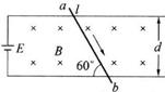 ★★5.水平放置的平行金属导轨相距为d,导轨一端与电源相连,垂直于导轨平面的匀强磁场的磁感应强度为B,方向如图所示.长为l的金属棒ab静止在导轨上,棒与导轨成60°角,此时,通过金属棒的电流为I,则金属棒所受的安培力大小为________.