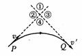 粒子经过某一原子核附近时的轨迹如图所示.图中P、Q为轨迹上的点,虚线是经过P、Q两点并与轨迹相切的直线,两虚线和轨迹将平面分为四个区域.不考虑其他原子核对