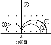 16.在垂直于纸面向外的匀强磁场中,从A处垂直于磁场飞出一批速度相同的粒子,形成如图的径迹,则