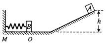 10.如图所示,坡道顶端距水平面高度为h,质量为m1的小物块A从坡道顶端由静止滑下,进入水平面上的滑道时无机械能损失,为使A制动,将轻弹簧的一端固定在水平滑道延长线M处的墙上,另一端与质量为m2的挡板B相连,弹簧处于原长时,B恰位于滑道的末端O点。A与B碰撞时间极短,碰后结合在一起共同压缩弹簧,已知在OM段A、B与水平面间的动摩擦因数均为μ,其余各处的摩擦不计,重力加速度为g,求