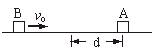 设A物体质量m1=1.0 kg,开始时静止在直线上某点;B物体质量m2=3.0 kg,以速度v0从远处沿该直线向A运动,如图所示。若d=0.10 m,F=0.60 N,v0=0.20 m/s,求: