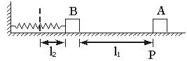 图中,轻弹簧的一端固定,另一端与滑块B相连,B静止在水平直导轨上,弹簧处在原长状态.另一质量与B相同的滑块A,从导轨上的P点以某一初速度向B滑行.当A滑过距离l1时,与B相碰,碰撞时间极短,碰后A、B紧贴在一起运动,但互不粘连.已知最后A恰好返回到出发点P并停止.滑块A和B与导轨的滑动摩擦因数都为μ,运动过程中弹簧最大形变量为l2 ,重力加速度为g.求A从P点出发时的初速度v0.
