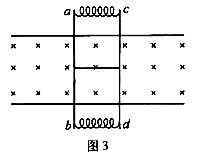 如图3所示,两根足够长的固定平行金属光滑导轨位于同一水平面,导轨上横放着两根相同的导体棒ab、cd与导轨构成矩形回路.导体棒的两端连接着处于压缩状态的两根轻质弹簧,两棒的中间用细线绑住,它们的电阻均为R,回路上其余部分的电阻不计.在导轨平面内两导轨间有一竖直向下的匀强磁场.开始时,导体棒处于静止状态.剪断细线后,导体棒在运动过程中