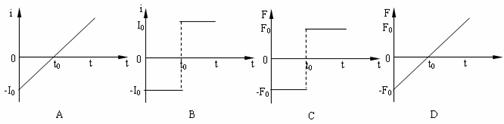 角斜向下的匀强磁场中,匀强磁场的磁感应强度B随时间的变化规律如图乙所示(规定斜向下为正方向),导体棒ab垂直导轨放置,除电阻R的阻值外,其余电阻不计,导体棒ab在水平外力作用下始终处于静止状态。规定a→b的方向为电流的正方向,水平向右的方向为外力的正方向,则在0-t时间内,能正确反映流过导体棒ab的电流i和导体棒ab所受水平外力F随时间t变化的图象是( )D