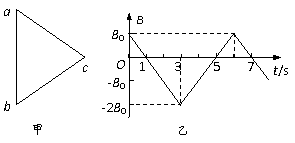 如图甲所示,正三角形导线框abc放在匀强磁场中静止不动,磁场方向与线框平面垂直,磁感应强度B随时间t的变化关系如图乙所示,t=0时刻,磁感应强度的方向垂直纸面向里.图丙中能表示线框的ab边受到的磁场力F随时间t的变化关系的是(力的方向规定以向左为正方向) (