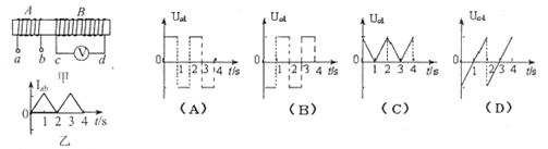 2006年7月1日,世界上海拔最高、线路最长的青藏铁路全线通车,青藏铁路安装的一种电磁装置可以向控制中心传输信号,以确定火车的位置和运动状态,其原理是将能产生匀强磁场的磁铁安装在火车首节车厢下面,如图甲所示(俯视图),当它经过安放在两铁轨间的线圈时,线圈便产生一个电信号传输给控制中心.线圈边长分别为l1和l2,匝数为n,线圈和传输线的电阻忽略不计.若火车通过线圈时,控制中心接收到线圈两端的电压信号u与时间t的关系如图乙所示(ab、cd均为直线),t1、t2、t3、t4是运动过程的四个时刻,则火车(