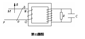 如图所示,MN和PQ为两根足够长的水平光滑金属导轨,导轨电阻不计,变压器为理想变压器,现在水平导轨部分加一竖直向上的匀强磁场,金属棒ab与导轨电接触良好,则以下说法正确的是 ( )CD