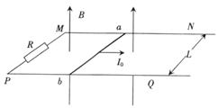 (16分)如图所示,足够长的金属导轨MN和PQ与R相连,平行地放在水平桌面上,质量为m的金属杆可以无摩擦地沿导轨运动.导轨与ab杆的电阻不计,导轨宽度为L,磁感应强度为B的匀强磁场垂直穿过整个导轨平面.现给金属杆ab一个瞬时冲量I0,使ab杆向右滑行.