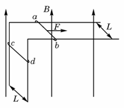 解:⑴ab棒在外力F的作用下向右运动,从而产生感应电动势,使得ab棒受到水平向左的安培力,cd棒受到水平向右的安培力,两棒同时向右运动,均产生感应电动势,其回路的等效电动势