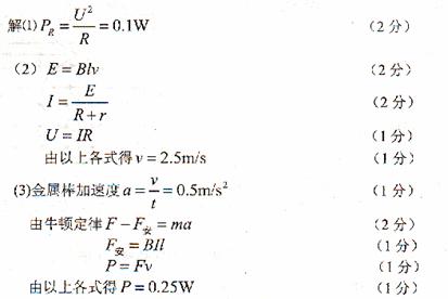 ⑵由电流图像可知,感应电流随时间变化的规律:I=0.1t (1分)