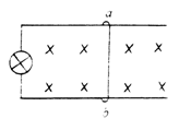 (14分)如图所示,小灯泡的规格为“4V 4W”,接在两光滑水平导轨的左端,导轨间距L=0.5m,电阻不计.金属棒ab垂直搁置在导轨上,电阻r =1Ω,整个装置处于垂直于纸面向里的匀强磁场中,磁感应强度B=1T.为使小灯泡正常发光,求: