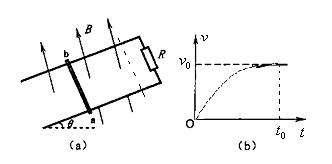 39、(13分)如图所示,两根足够长的光滑平行金属导轨相距为L,导轨平面与水平面成θ角,上端通过导线连接阻值为R的电阻,阻值为r的金属棒ab放在两导轨上,棒与导轨垂直并保持良好接触,整个装置处在垂直导轨平面向上的磁场中,若所加磁场的磁感应强度大小恒为B,使金属棒沿导轨由静止向下运动,金属棒运动的v-t图像如图(b)所示,当t=t0时刻,物体下滑距离为s。已知重力加速度为g。试求: