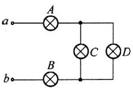 6.如图所示电路中,各灯额定电压和额定功率分别是:A灯“10V,10W",B灯"60V,60W”,C灯"40V,40W",D灯"30V,30W".在a、b两端加上电压后,四个灯都能发光.比较各灯消耗功率的大小,正确的是( ).