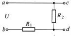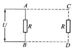 如图所示,A、B两端的电压U一定,电阻R先接在A、B两端,消耗功率为9W.再将电阻R接在较远的C、D两端,消耗功率为4W.在后一种情况下,输电导线AC、BD共消耗功率为( ).